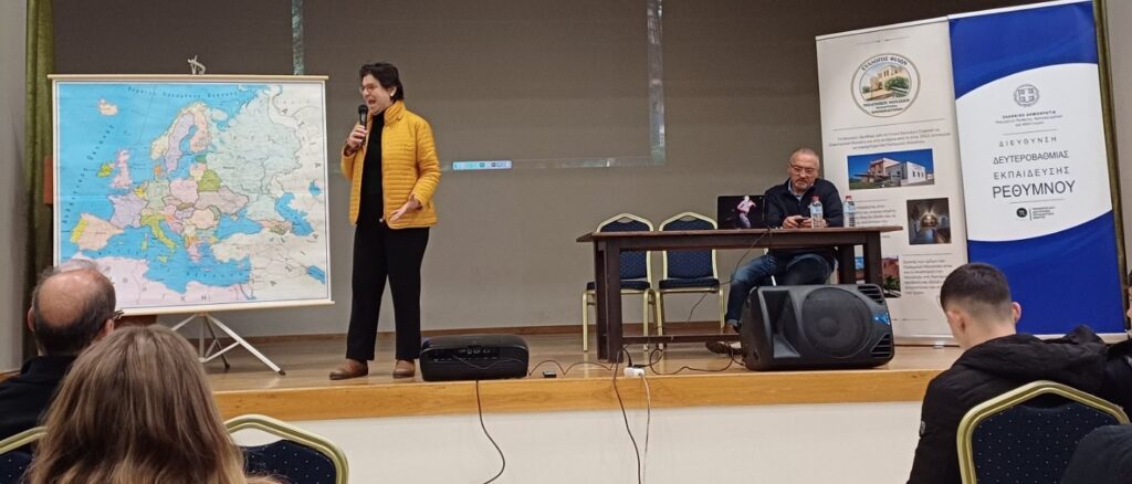 Οι μαθητές των τμημάτων Γ3 και Γ6 του σχολείου μας είχαν την ιδιαίτερη τιμή να παρακολουθήσουν την Τετάρτη 28 Ιανουαρίου στο «Σπίτι του Πολιτισμού» μια καθηλωτική ομιλία από την κ. Μαρία Ευθυμίου, διακεκριμένη ιστορικό και Ομότιμη Καθηγήτρια του Εθνικού και Καποδιστριακού Πανεπιστημίου Αθηνών με τίτλο «Καίρια σημεία της Ιστορίας του Ελληνισμού από την εποχή των Μυκηναίων έως σήμερα».
